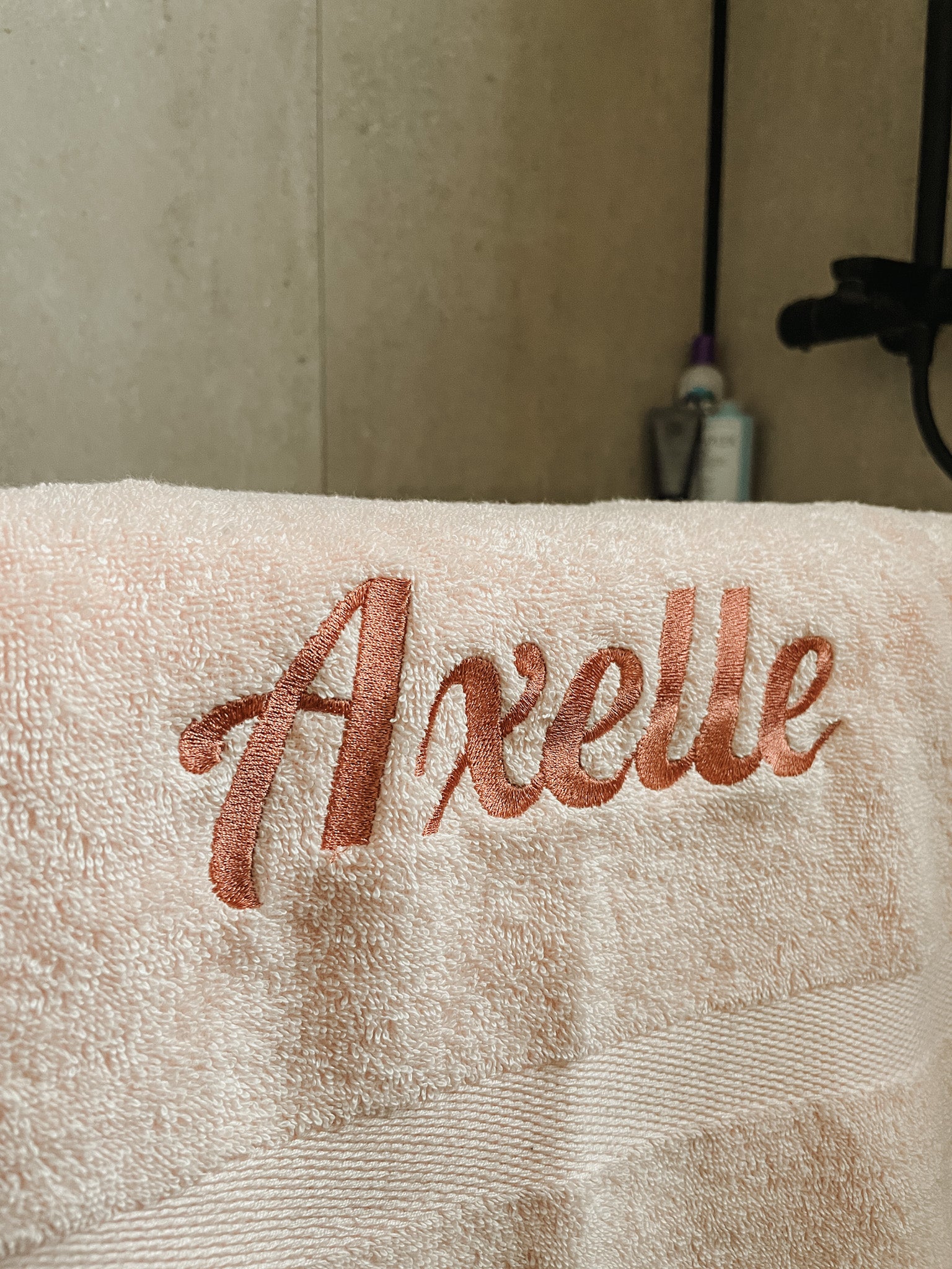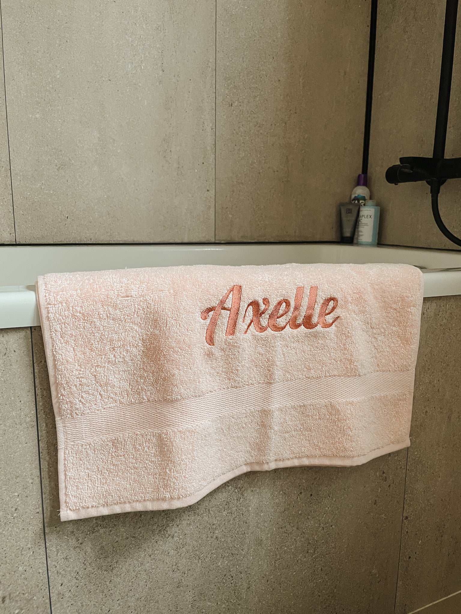 Laat de naam borduren in een kleur naar keuze voor een mooi én duurzaam detail. Zo wordt een gewone handdoek een persoonlijk gebruiksvoorwerp dat ook ideaal is als cadeau bij geboorte, verjaardag...